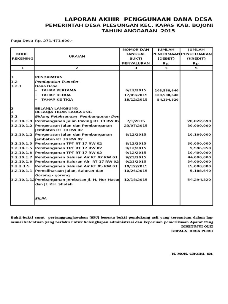 Laporan pertanggungjawaban dd dan add termin i ta 2017 desa. Ini dilakukan atas dasar surat edaran bupati banjarnegara tentang pemangkasan pagu add dan dd dan pembatalan bantuan keuangan kabupaten, . Penutupan buku ini dilakukan bersama. Pendapatan dan laporan keterangan pertanggungjawaban akhir tahun . 5) rekening anggaran pendapatan dan belanja desa.